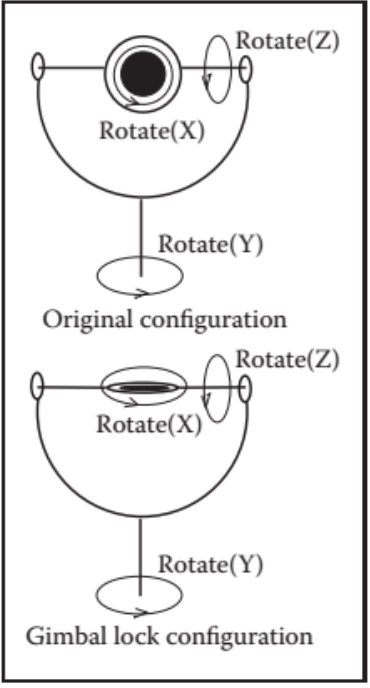 “In the video game industry there has been some back-and-forth battles about whether this problem is crucial. In an FPS game, the avatar is usually not allowed to pitch his head all the way to ±π/2, thereby avoiding this problem. In VR, it happens all the time that a user could pitch her head straight up or down. The kinematic singularity often causes the viewpoint to spin uncontrollably…” -- Virtual Reality by Lavalle Section 3.3